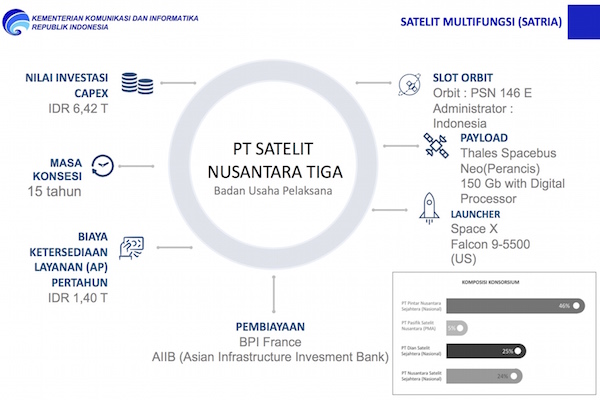 Menurut Menteri Kominfo Satria ini dibangun oleh PT. Satelit Nusantara 3 dengan pembiayaan sebesar Rp6,4 Triliun. “Dana sebesar itu, sesuai dengan kebutuhan masyarakat Indonesia, di mana satelit itu memimiliki kapasitas 150 gigabita perdetik dan kapasitas enam kali lipat dari satelit yang sudah ada di Indonesia,” tambahnya.